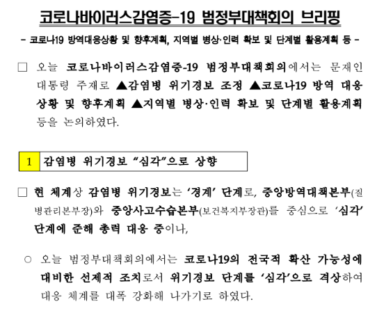 1 감염병 위기경보 “심각”으로 상향