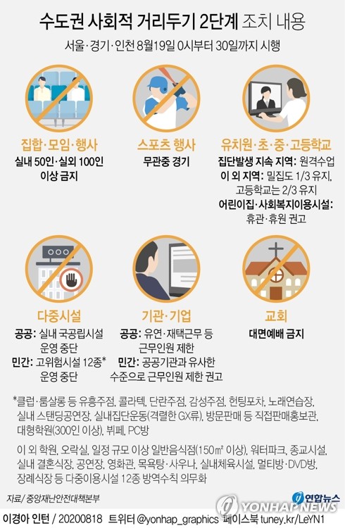 "서울·경기·인천서 내일 0시부터 적용…실내 50인 이상 모임 금지"