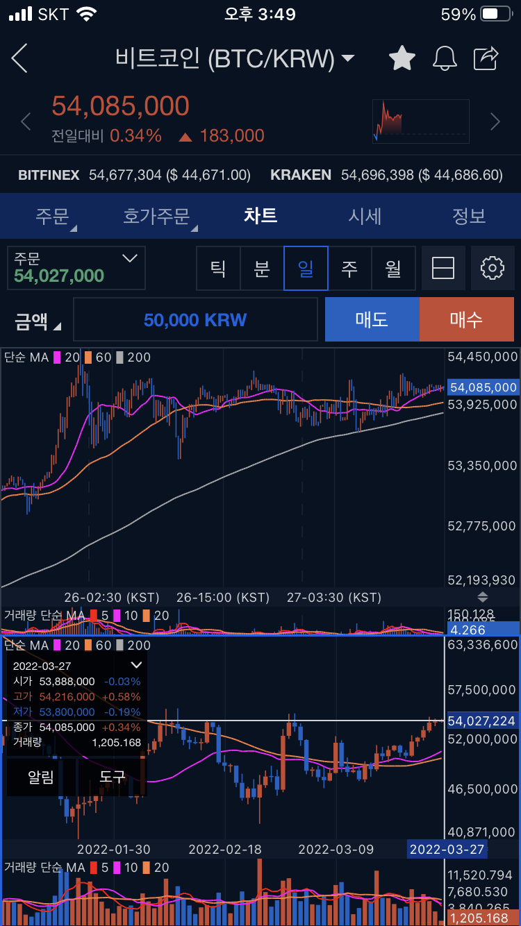 | 3월 26일 비트코인 53.9k 김프 -1% 44,400 달러 (0) | 2022.03.26 |