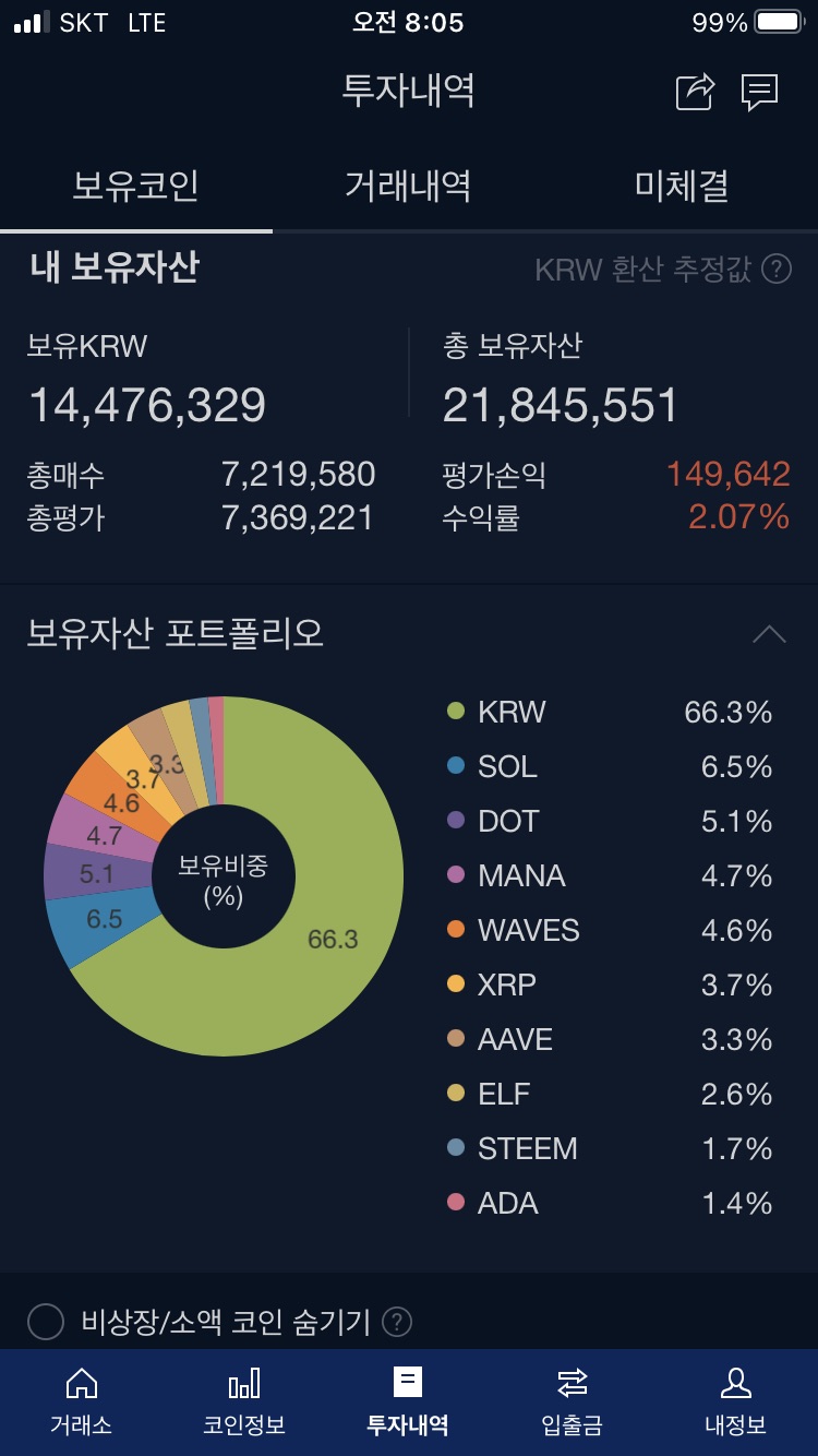 현금 67% 코인 33% > 현금 100%