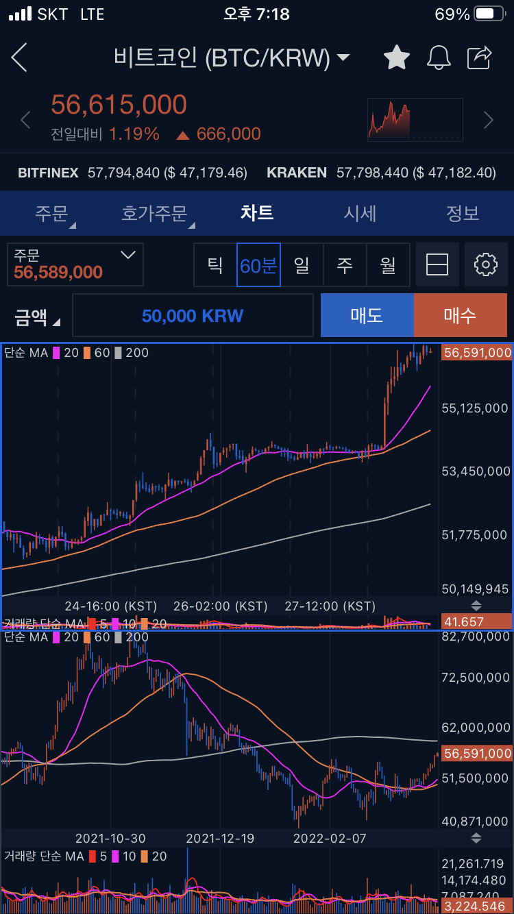 비트코인 54k대에서 57k대 까지 5% 이상 상승