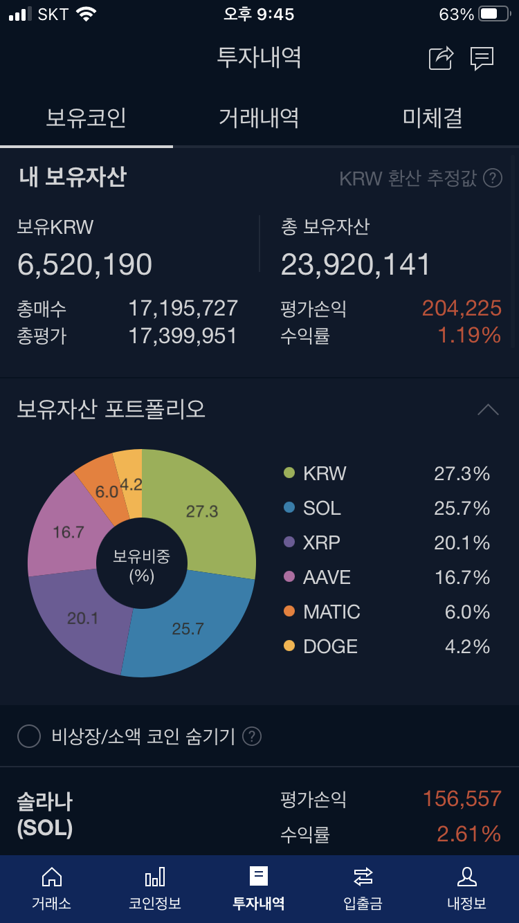 도지코인 10%대 익절 솔라나 1~3% 약익절