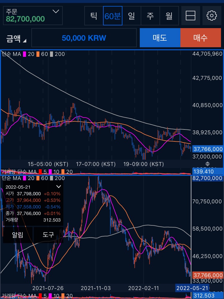 | 5월 6일~5월 12일 매매일지 비트코인 50.8k > 37.0k > 38.7k (-24%) (0) | 2022.05.12 |